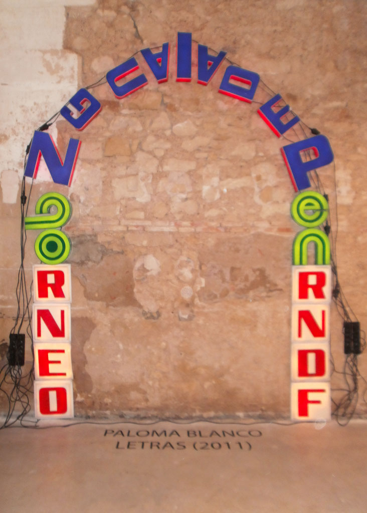 Siempre me atrajeron las letras luminosas de los comercios, y durante años me dediqué a localizar y recuperar algunas de la ciudad de Alicante. Participé en ALC 2011, el proyecto colectivo anual de Parking Gallery (Alicante), con una instalación de letras luminosas que formaban un arco de tres metros de altura.